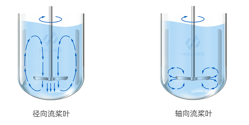 當液流從攪拌槳軸推向罐體內壁便形成徑向流,當液流沿攪拌槳軸上下推動便形成軸向流,同理當攪拌槳帶動液體既有徑向流動又有軸向流動時便為混合流。