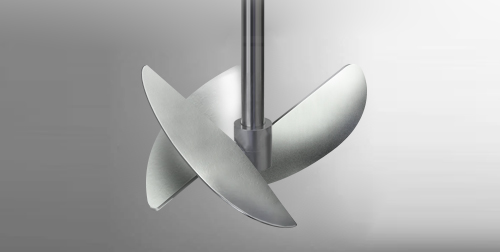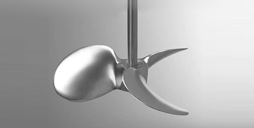 也被稱為推進式攪拌槳,如圖所示。槳葉前麵可為平麵或凹麵,但背麵都是凹麵。在旋轉時使液體向前方呈軸向流排出,使之在罐內形成循環,用於產生軸向流。這種槳葉循環速度較高,但是循環量較大,攪拌時產生的剪切力較小,但其和徑向流槳葉一樣,均是產生的單向流,因此混合效果較差,常用於低粘度流體,常用轉速範圍為100~500rpm。此類槳式及推進式槳葉對氣體吸收過程基本上不適用,隻有在少量易吸收的氣體或要求分散度不高時才能應用。它主要用於液-液體係的混合、使溫度均一化、在低濃度固-液體係中防止淤漿沉降等或者某些特定的厭氧培養。 |